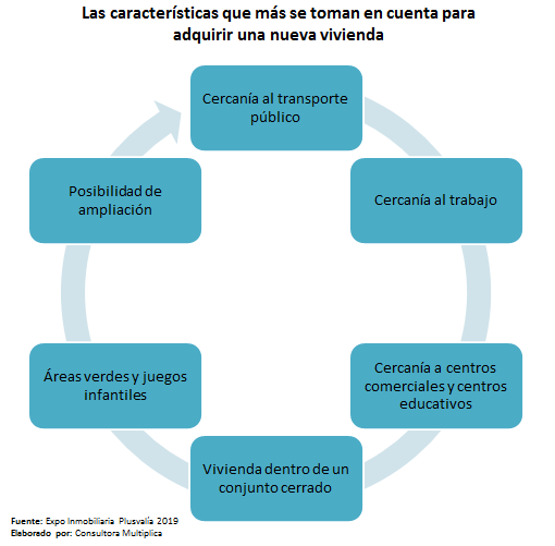 Los sectores con mayor atractivo para compra son el norte de Quito, Valle de los Chillos, Cumbayá y Tumbaco. Las características que más se toman en cuenta para adquirir una nueva vivienda es que sea cercano al transporte público, trabajo, centros comerciales y centros educativos, otras de las preferencias de los visitantes son que la vivienda esté dentro de un conjunto cerrado con garita de seguridad, áreas verdes, juegos infantiles y con posibilidad de ampliación, el tipo de inmueble de preferencia son casas, seguidas por departamentos y terrenos.