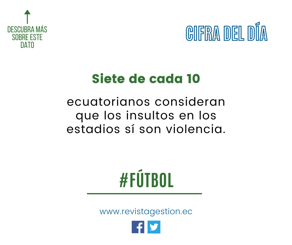 El fútbol es parte del mundo laboral, sus protagonistas son trabajadores y lo que no es admisible en una oficina o una fábrica tampoco debería serlo en un estadio. Algo simple, que parece estar siempre claro para muchos ecuatorianos ya que un 78%, 7 de cada 10, cree que los insultos en la cancha es violencia.