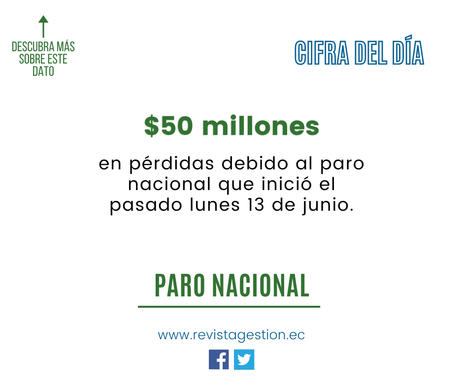 Según información compartida por el Ministerio de Producción, hasta este jueves 16 de junio del 2022, basándose en la proyección de la información entregada por los gremios productivos del país, se estima que las pérdidas en las ventas del sector bordean ya los USD 50 millones debido al paro nacional que inició el pasado lunes 13 de junio.