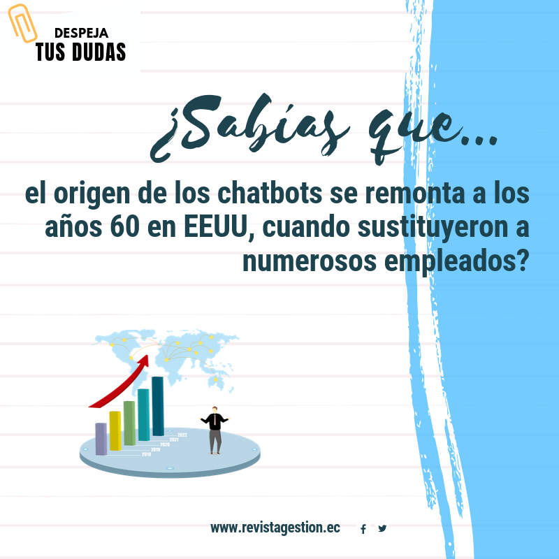 La tecnología permite digitalizar los chatbot para que ofrezcan respuestas automatizadas. Sus orígenes se remontan a los años 60 en EEUU, donde sustituyeron a empleados de centros de llamadas por agentes virtuales con comandos de respuestas en función de las dudas de los usuarios. Desde entonces, su investigación no ha cesado y los precedentes más cercanos que se tienen, respecto a los futuros chatbots, son Siri o Cortana de Apple y Microsoft respectivamente.