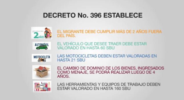 Además, un vehículo automotor o motocicleta de uso personal o familiar siempre que cumpla con los requisitos detallados en la Ley Orgánica de Movilidad Humana, Decreto Ejecutivo 396.
