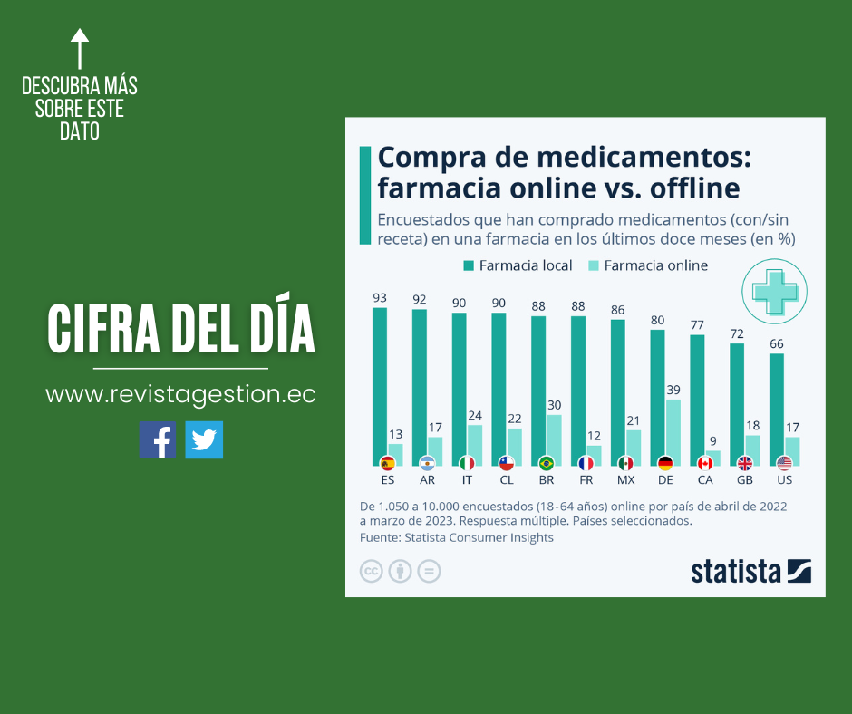 En el continente americano, los medicamentos también se compran mayoritariamente en farmacias físicas. El 92% de los argentinos lo hace, frente al 17% que opta por conseguirlos online. En Canadá, la proporción de entrevistados que han decidido comprar en farmacias en línea en el último año apenas alcanza el 9%.