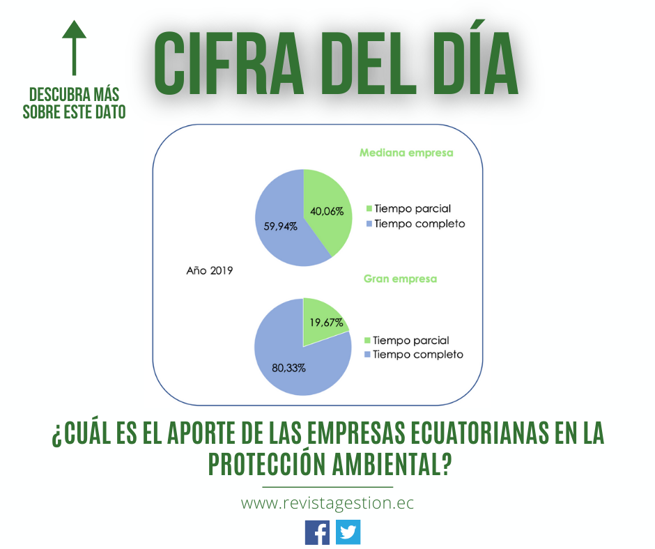 De las 996.894 personas que laboraron en las empresas en el año 2019; 6.989 (0,70%) realizaron actividades ambientales. En la mediana empresa, el 59,94% trabajó a tiempo completo, mientras que el 40,06% lo hizo a tiempo parcial. En la gran empresa, el 80,33% trabajó a tiempo completo, mientras que el 19,67% lo hizo a tiempo parcial.