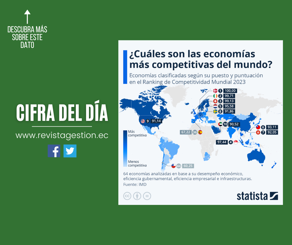 España, por su parte, sigue estancada a mitad de la tabla, pues repite este año en el puesto 36. La posición se explica por un mejorable desempeño económico y de eficiencia empresarial. En América Latina, Chile sigue liderando el ranking, ubicándose en el puesto 44 a nivel mundial. El segundo puesto en la región lo ocupa Perú (lugar 55 a nivel mundial) y el tercero, México (56 a nivel mundial).