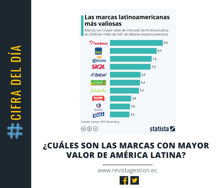 El pasado 28 de febrero, las empresas de consultoría e investigación de mercado Kantar y WPP divulgaron una nueva edición del informe ‘Brandz - Top 50 Most Valuable Latin American Brands 2020’. En él, compilaron las 50 marcas latinoamericanas que ostentan un mayor valor de mercado. La marca brasileña Bradesco, perteneciente al banco homónimo con sede en Osasco, São Paulo, se hizo con el primer lugar del ranking, con un valor de marca de nada menos que 9.500 millones de dólares. En segundo lugar se ubicó otro de los mayores bancos de Brasil, Itaú, cuya marca está valuada en cerca de 8.400 millones.