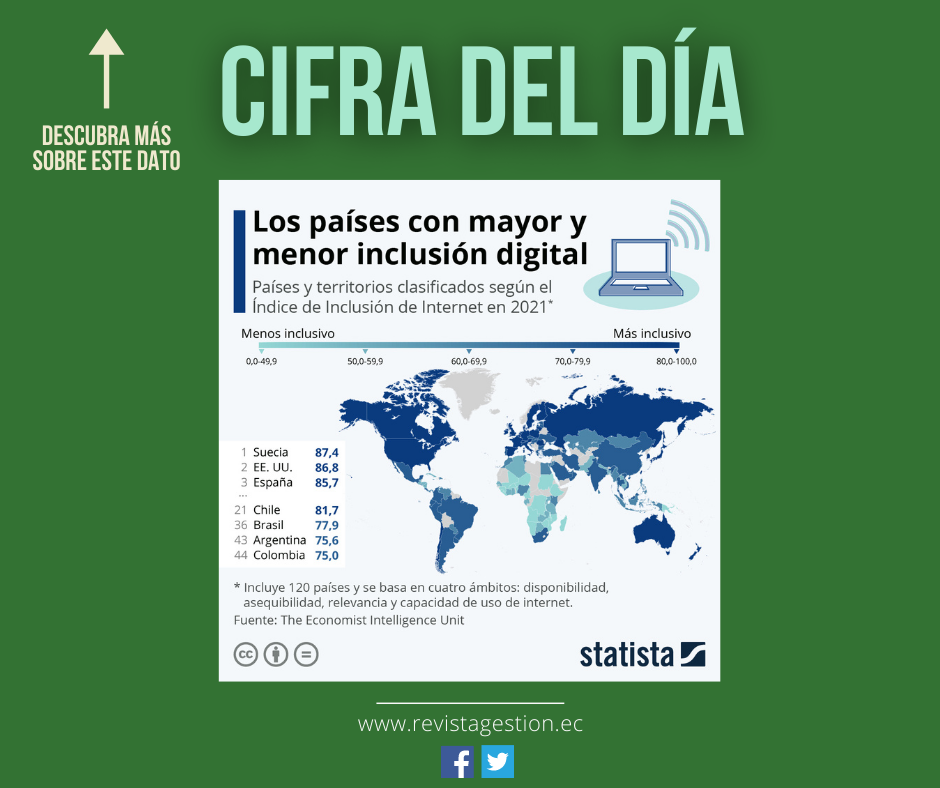 En las regiones en desarrollo, muchos países siguen sin poder ofrecer un entorno propicio para cerrar la brecha digital. Como muestra este gráfico de Statista realizado a partir del Índice de Internet Inclusivo 2021 de la Unidad de Inteligencia de The Economist, el continente africano es el que muestra las mayores dificultades en este ámbito. En América Latina, si bien varios Estados se posicionan entre los 50 países con la más alta puntuación, tales como Chile y Brasil, la región de Centroamérica y el Caribe es la que se encuentra más rezagada en el acceso a internet y las nuevas tecnologías.