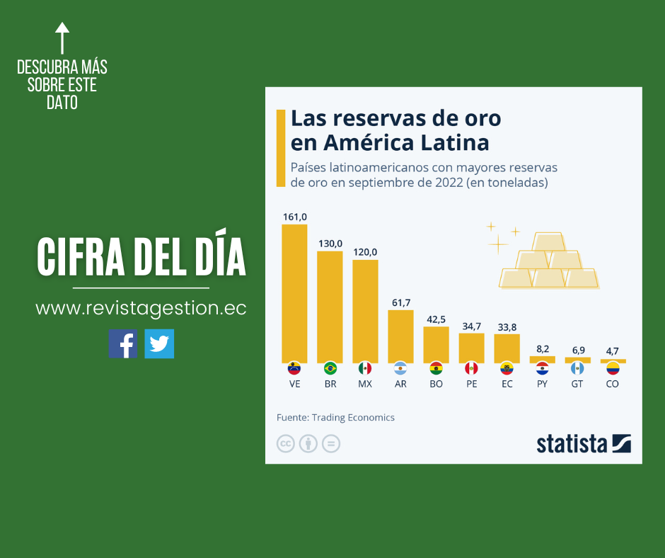 Como muestra esta infografía de Statista, Venezuela es el país latinoamericano con las mayores reservas de oro. Con unas 161 toneladas en septiembre de 2022, el Banco Central de la República Bolivariana acumula un 25% más de oro que México, país que cuenta con unas 120 toneladas, según datos de Trading Economics. Brasil, por su parte, se ubica segundo en el ranking de la región, con 130 toneladas. Aun así, la cantidad de oro de la que disponen estos países latinoamericanos es muy inferior si la comparamos con las naciones con las mayores reservas de oro del mundo, con Estados Unidos a la cabeza, que suma más de 8.100 toneladas.