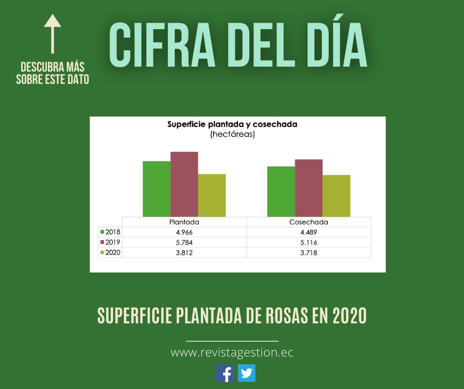La superficie plantada de rosas en el año 2020 fue de 3.812 hectáreas representando el 73,06% del total nacional de flores cultivadas.