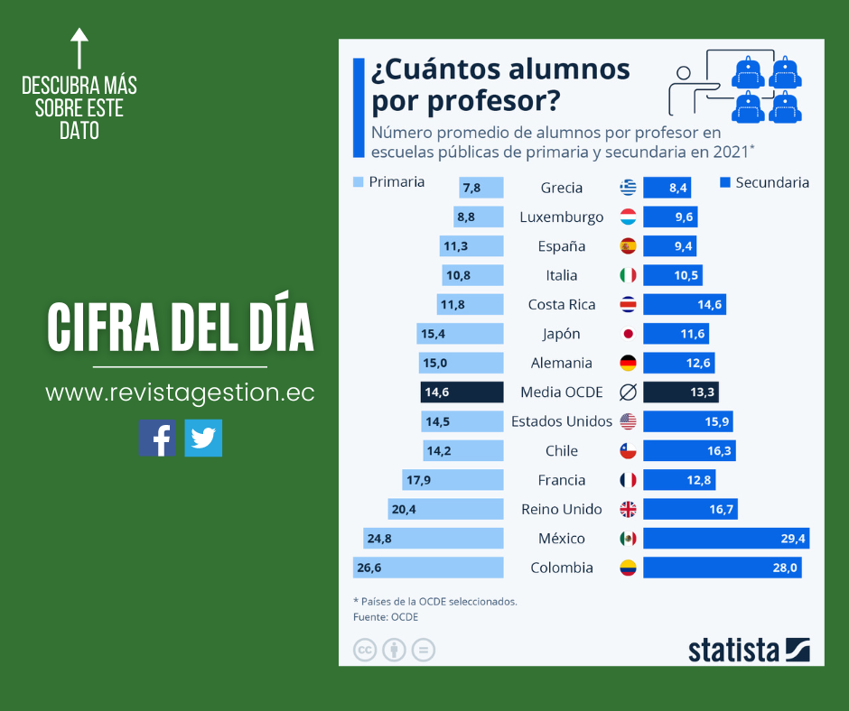 En relación con esta problemática, México y Colombia son los países de la Organización para la Cooperación y el Desarrollo Económicos (OCDE) en los que los profesores trabajan con las clases más concurridas, con una media de unos 27 alumnos por profesor en ambos países, en la enseñanza pública (primaria y secundaria). Por el contrario, Grecia tiene una media de ocho alumnos por profesor, y Luxemburgo, nueve.