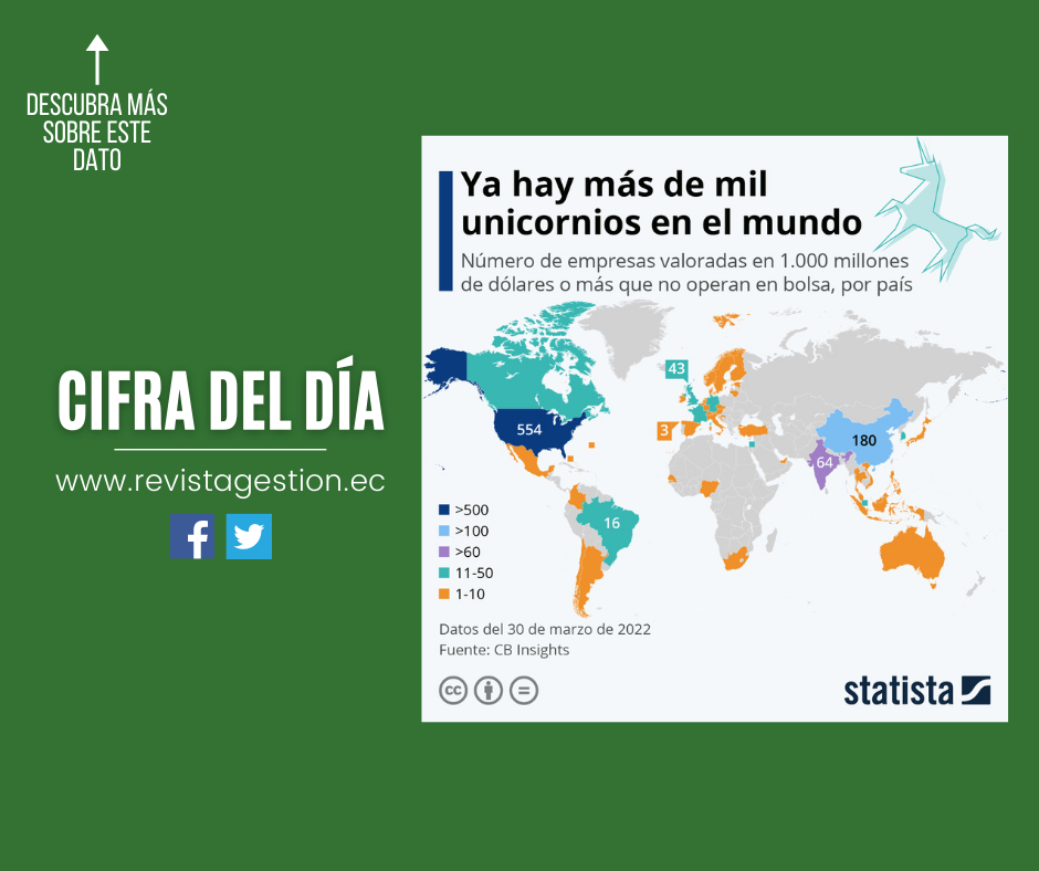 Según CB Insights, 1.066 empresas que no cotizan en bolsa están valoradas actualmente en 1.000 millones de dólares estadounidenses o más en todo el mundo. Solo en 2021 nacieron 519 de estas compañías llamadas unicornio.