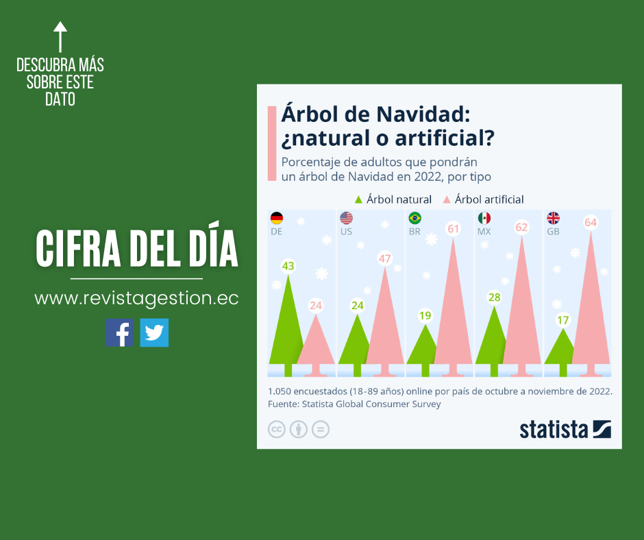 Para muchos, la Navidad no sería Navidad sin un árbol. En México, por ejemplo, el 90% de los adultos entrevistados en la macroencuesta Global Consumer Survey de Statista, llevada a cabo entre octubre y noviembre de 2022, aseguran que pondrán un árbol de Navidad este año. Pero las dudas a menudo surgen al plantear el siguiente dilema: ¿comprar un árbol de Navidad artificial o hacerse con uno natural?