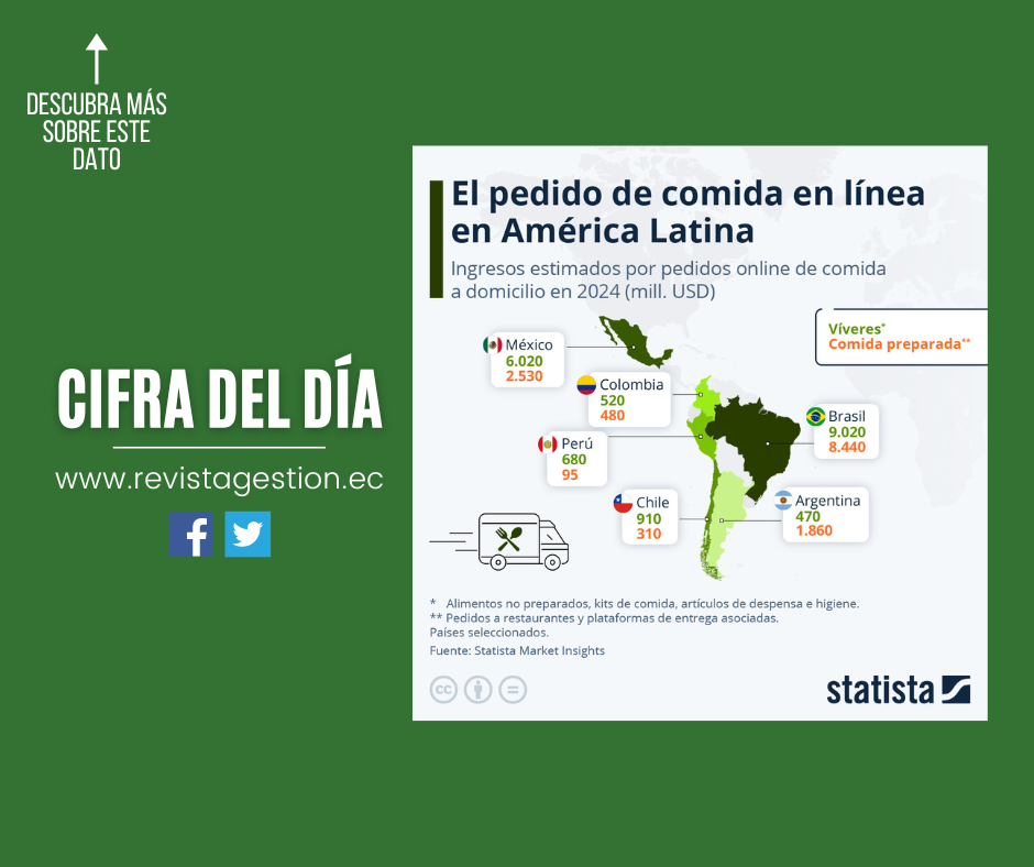 Según estimaciones de Statista Market Insights, las plataformas de reparto de comida han llegado para quedarse. Se prevé que en 2024 los pedidos de comida preparada a domicilio —ya sea directamente a los restaurantes o a través de plataformas de entrega asociadas— generen ingresos superiores a los 8.400 millones de dólares en Brasil. En México, se espera que esta facturación alcance los 2.500 millones de dólares, mientras que en Argentina se proyecta una cifra de 1.860 millones.