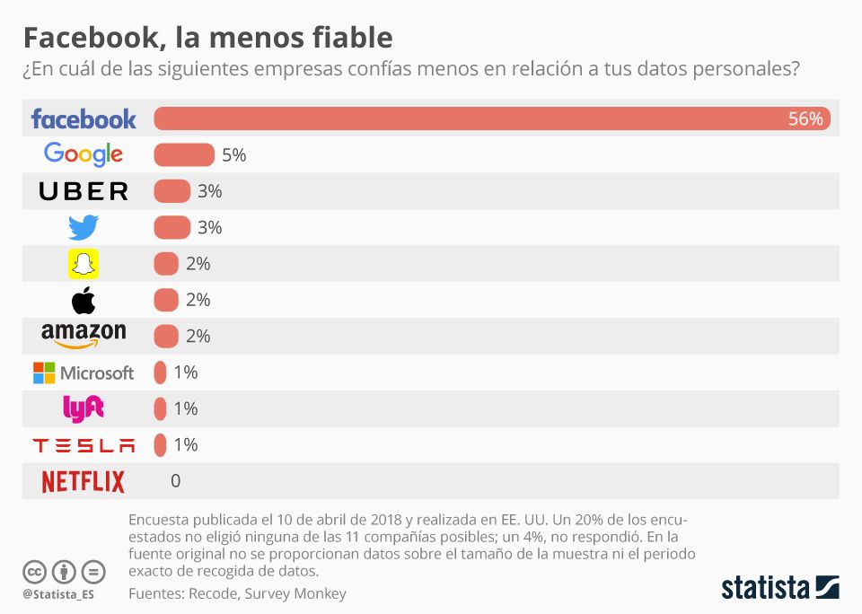 También en el día de ayer, la publicación Recode hizo públicos los resultados de un sondeo online que muestran como el 56% de los estadounidenses afirma que Facebook es la empresa tecnológica en la que menos confían respecto a la gestión de sus datos personales. Estos, sobre los que Recode no facilita datos sobre el tamaño de la muestra y el periodo de recogida de respuestas, todavía no pueden reflejar el efecto del interrogatorio a Zuckerberg en la opinión pública, si es que lo ha habido. Sin embargo, dado el diferente nivel de confianza respecto al resto de compañías (la siguiente empresa vista como menos honesta en este campo es Google con un 5%), se puede adelantar que Facebook no lo tendrá fácil para recuperar la confianza de sus usuarios.