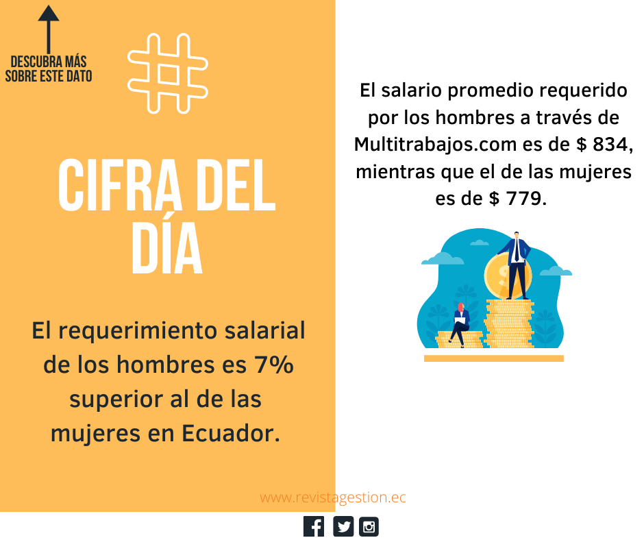 El Reporte del Mercado Laboral de Octubre de Multitrabajos.com muestra, entre otras cosas, que en ese mes la brecha en el salario requerido según el género subió a 7.0% a favor de los hombres. El salario promedio requerido por los hombres a través de esta plataforma es de $ 834 por mes, mientras que el de las mujeres es de $ 779.