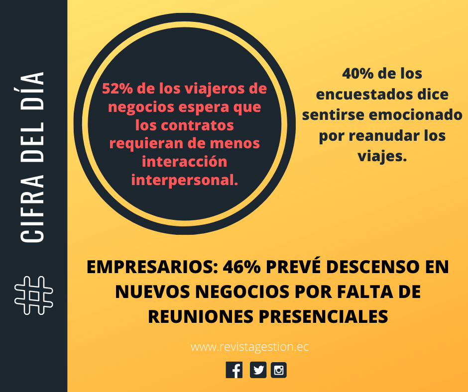 Una encuesta global de la firma de investigaciones Wakefield Research, encargada por SAP Concur, reveló que el 46% de empresarios siente que sus negocios tendrán consecuencias negativas debido a la ausencia de los viajes de trabajo. El informe se realizó entre 4.850 viajeros de negocios en 23 mercados a nivel mundial, quienes proporcionaron sus puntos de vista referente a la idea de retomar los viajes de negocio para tener reuniones presenciales con sus clientes.