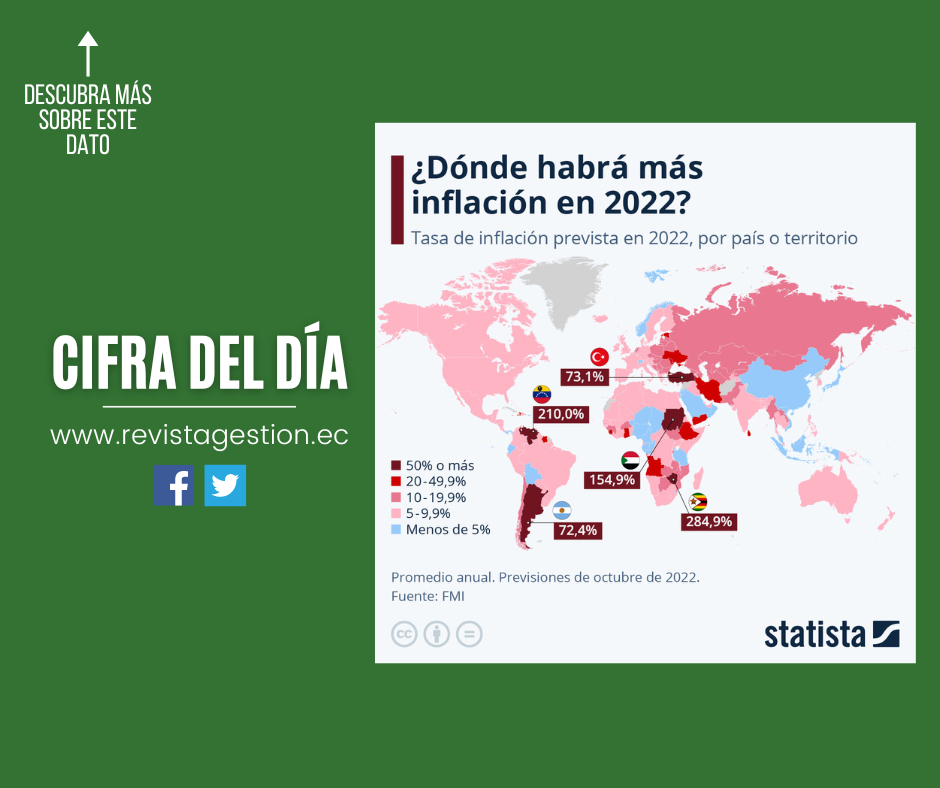 Se prevé que los países que atraviesan conflictos, convulsiones o problemas económicos importantes en 2022 registren tasas de inflación muy superiores al promedio mundial del 8,8%. Entre ellos se encuentran Venezuela, Sudán, Zimbabue, Turquía y Argentina. Según los cálculos del FMI, unos 95 países tendrán una inflación superior al 5% pero inferior al 10% este año. Esta cifra supera a los cerca de 40 mercados que se estima podrían mantener la inflación por debajo del 5%.