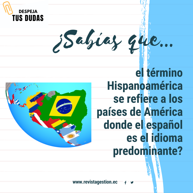 El término Hispanoamérica se refiere a los países de América donde el español es el idioma predominante. Parte de la raíz de Hispania, nombre con el que los romanos llamaron al grueso de la Península Ibérica cuando estuvo bajo su imperio. En términos geográficos, Hispanoamérica incluye a diecinueve países: Argentina, Bolivia, Chile, Colombia, Costa Rica, Cuba, Ecuador, El Salvador, Guatemala, Honduras, México, Nicaragua, Panamá, Paraguay, Perú, Puerto Rico (Estado Libre Asociado de USA), República Dominicana, Uruguay y Venezuela.