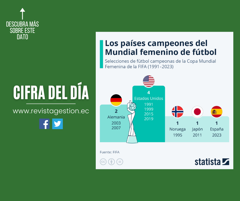 En contraste con la suerte de la selección masculina, las representantes del fútbol femenino de Estados Unidos en la escena internacional han vivido periodos de dominio en lo más alto de este deporte. Con victorias en la Copa Mundial en la edición inaugural de 1991 y en 1999, así como en el penúltimo y antepenúltimo torneo, Estados Unidos es una fuerza importante en el fútbol femenino. Al menos en el caso de Alemania, dos veces ganadora, se reproduce en cierta medida la forma y la historia del fútbol masculino. Sin embargo, Noruega y Japón ofrecen otros dos nuevos nombres en la lista de ganadores de la Copa Mundial de la FIFA, con triunfos en 1995 y 2011, respectivamente.