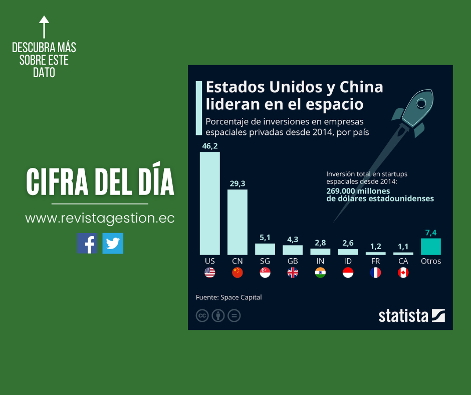 Según Space Capital, desde 2014 se han invertido unos 269.000 millones de dólares en empresas espaciales privadas. Casi la mitad de esta suma ha ido a parar a compañías de Estados Unidos, mientras que el 29% se invirtió en empresas chinas.