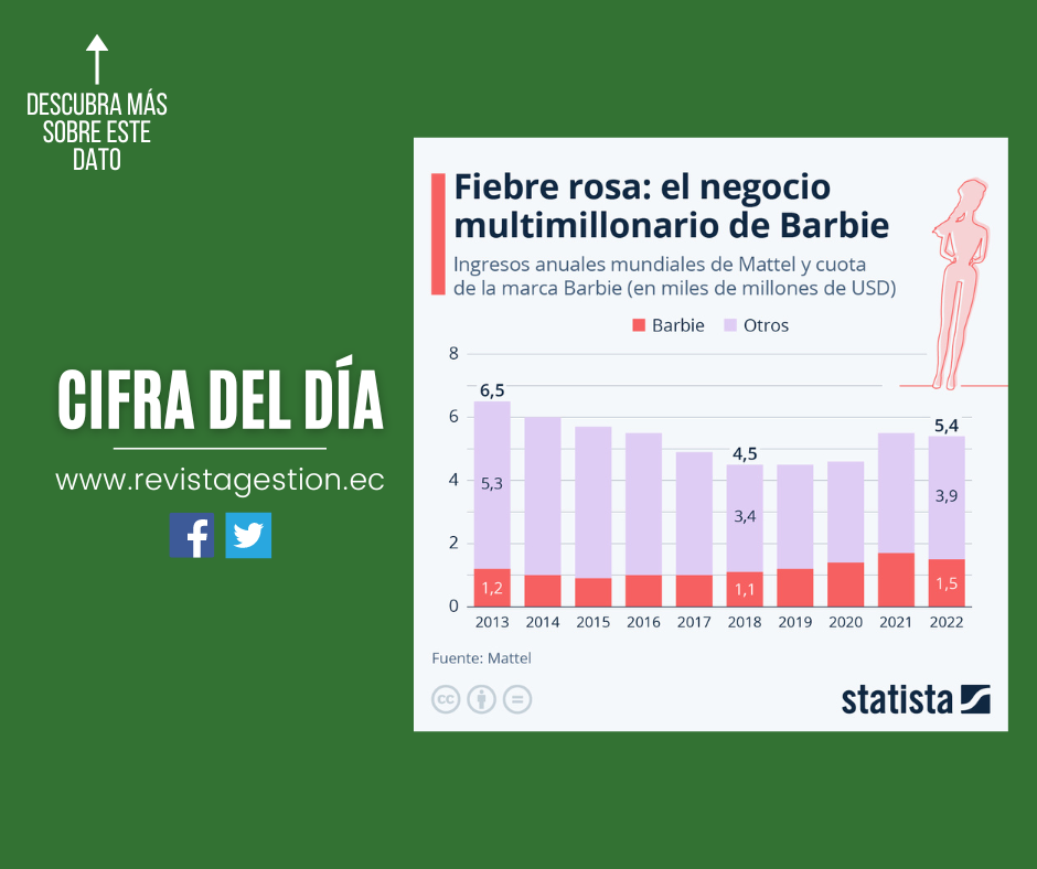 Esta semana, la icónica muñeca tendrá su primera adaptación cinematográfica de acción real protagonizada por Margot Robbie en el papel de Barbie y Ryan Gosling como Ken, su compañero. Aunque aún no se ha determinado el impacto del próximo estreno en los ingresos de Mattel, la marca Barbie ha sido, en la última década, una constante fuente de ganancias para la empresa.