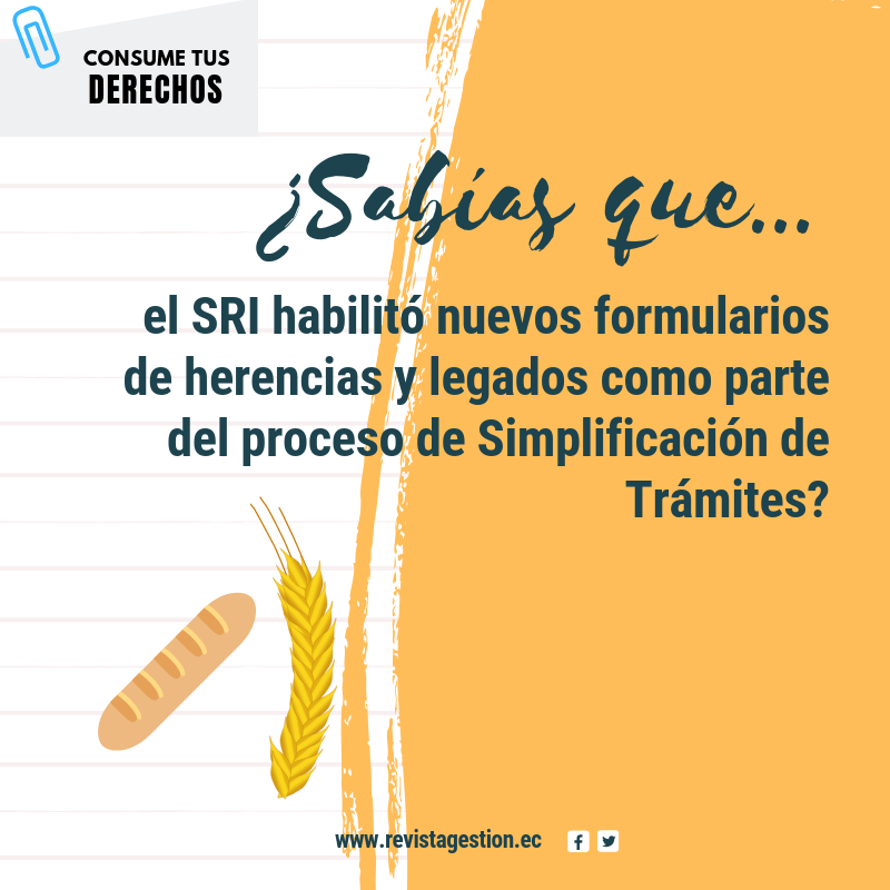 El Servicio de Rentas Internas (SRI), desde el 6 de julio de 2019, habilitó los nuevos formularios en línea de Herencias, Legados y Donaciones, que reemplaza al formulario 108, y el formulario del Anticipo del Impuesto a la Renta por Espectáculos Públicos, que reemplaza al formulario 116; como parte del proceso de Simplificación de Trámites que lidera la Secretaría General de la Presidencia y basados en el Decreto Ejecutivo 372, que declara como política de Estado la mejora y simplificación de trámites para asegurar una adecuada gestión gubernamental.