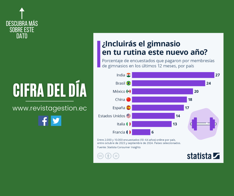En cambio, en Estados Unidos, el 14% de las personas encuestadas pagaron el gimnasio, seguida por Italia, con el 13%. El interés por hacer ejercicio en estos establecimientos es menos pronunciado en Francia, donde sólo el 6% de los encuestados aseguró pagar una suscripción a un gimnasio.