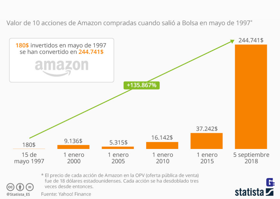 La fortuna de los que compraron acciones de Amazon cuando la empresa salió a Bolsa