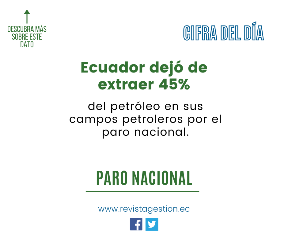 Debido al paro nacional, Ecuador ha dejado de extraer el 45% del petróleo en sus campos petroleros.