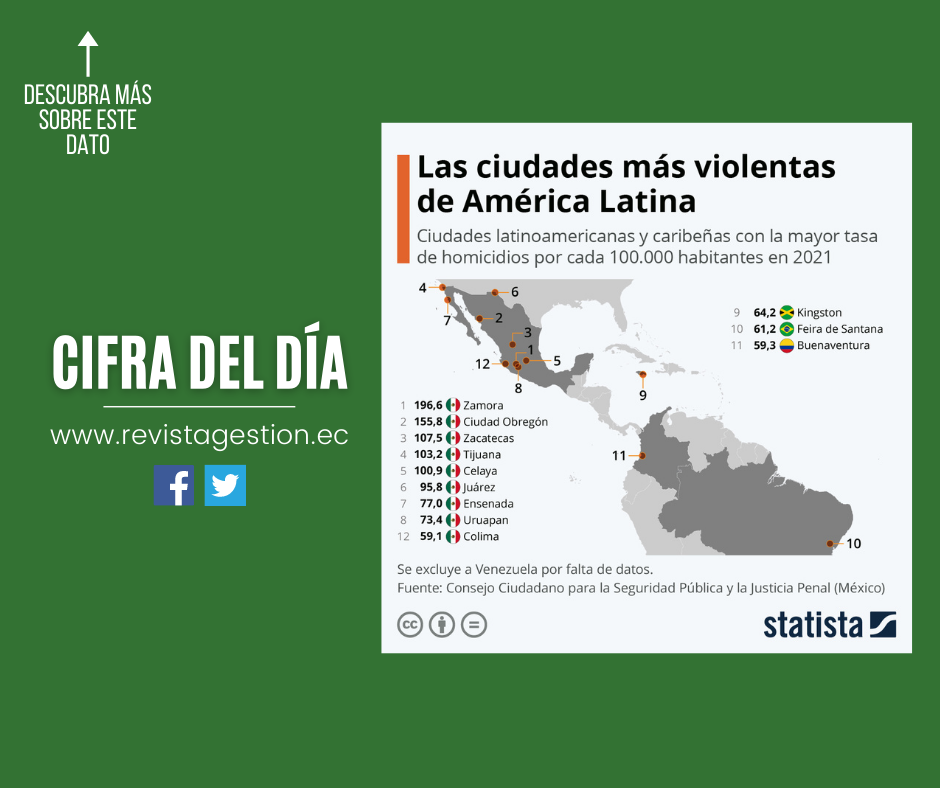 El Consejo Ciudadano para la Seguridad Pública y la Justicia Penal, una organización no gubernamental mexicana, publica todos los años un estudio sobre las ciudades más violentas del mundo. Según el nuevo reporte hecho público este mes, varias urbes situadas en México se ubican en las primeras posiciones de este infame ranking, al registrar las tasas de homicidios más altas de América Latina y del mundo en 2021. Así, Zamora, la tercera mayor ciudad del estado de Michoacán, lidera la lista con casi 197 homicidios perpetrados por cada 100.000 habitantes. Le sigue Ciudad Obregón, ubicada en el sur de Sonora, donde se registran cerca de 156 asesinatos por cada 100.000 personas. Zacatecas, capital del estado homónimo en el centro-norte de México, se sitúa en el tercer lugar, con una tasa de 107,5 homicidios.