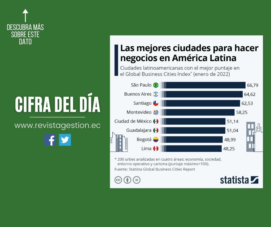 Según el estudio ‘Global Business Cities 2022’ de Statista, São Paulo es la mejor ciudad latinoamericana para hacer negocios. Este reporte evalúa a 200 ciudades económicamente relevantes de todo el mundo y las clasifica en función de los indicadores más importantes para la toma de decisiones a nivel empresarial.