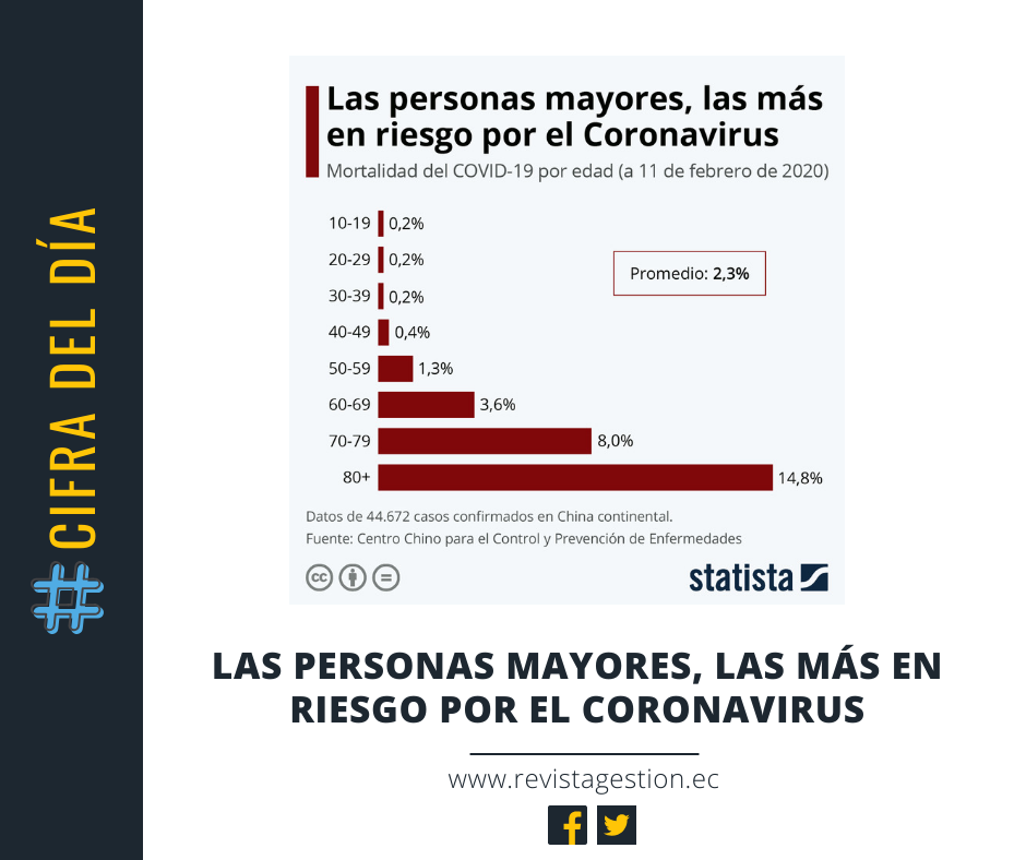 El Centro Chino para el Control y Prevención de Enfermedades ha publicado el primer informe donde analiza los casos de coronavirus encontrados en China continental. Uno de los hallazgos más relevantes de este es cómo la mortalidad del virus aumenta con la edad. Así, con datos de hasta el 11 de febrero, se sabe que la franja de edad más en riesgo es la de los mayores de 80 años, con 14,8 defunciones por cada 100 infectados, seguida de la de los de entre 70 y 79 años, con un 8%. Entre los menos de 10 años, en cambio, todavía no se ha producido ninguna muerte. La mortalidad promedio de todas las edades es 2,3%.