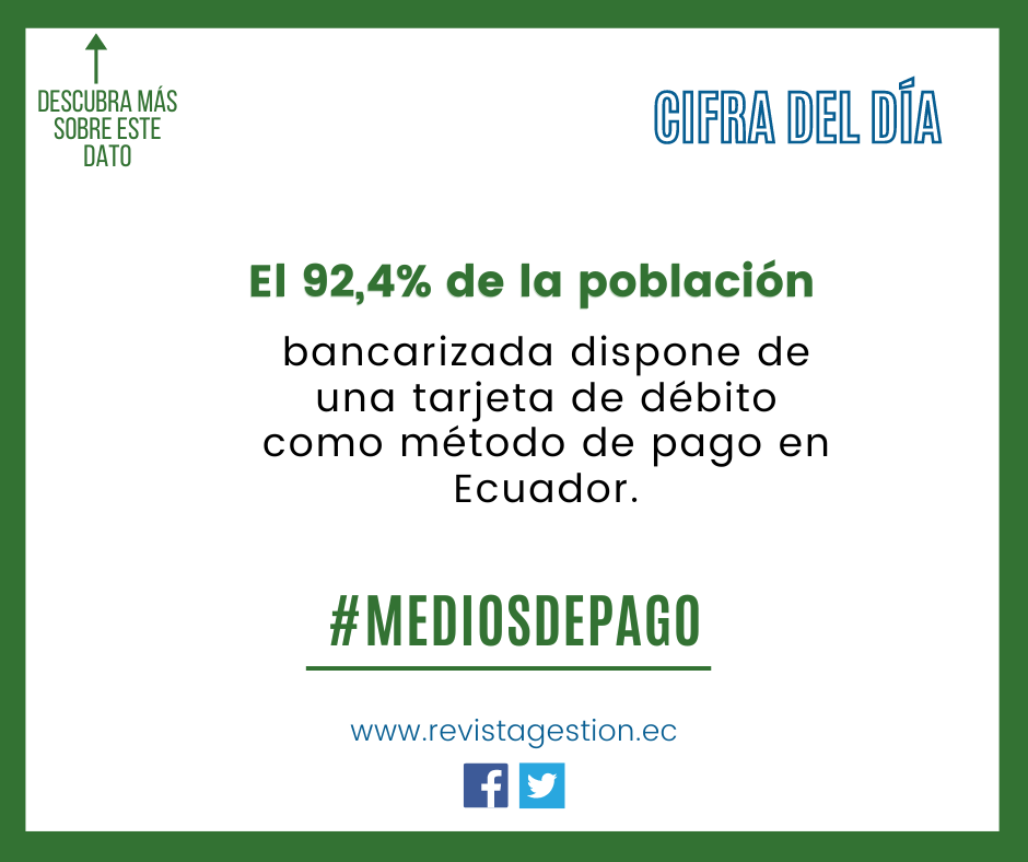 - La tarjeta de débito física se consolida a nivel mundial como el medio más utilizado para pagar presencialmente en todos los países. En Ecuador el 92,4% de la población bancarizada dispone de este método de pago y el 41% tiene al menos una tarjeta en modalidad virtual