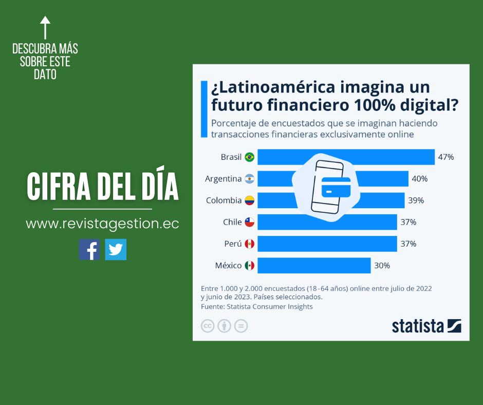 De acuerdo con datos de la macroencuesta Statista Consumer Insights, un promedio del 38% de los encuestados en seis países de América Latina se imaginan llevando a cabo todas sus transacciones financieras exclusivamente en línea.