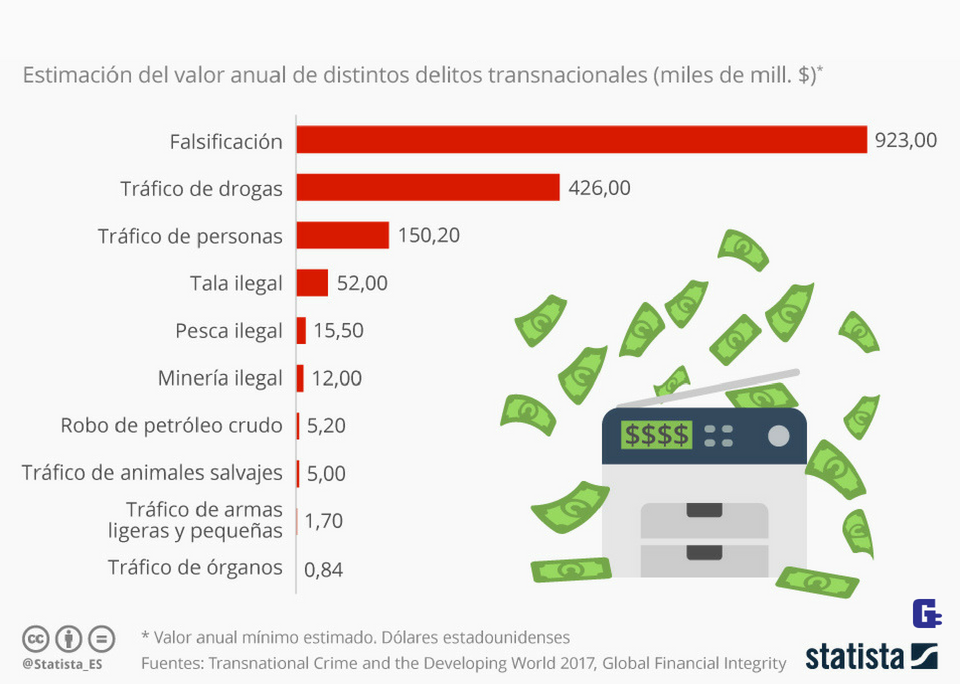 Los delitos internacionales que más dinero mueven