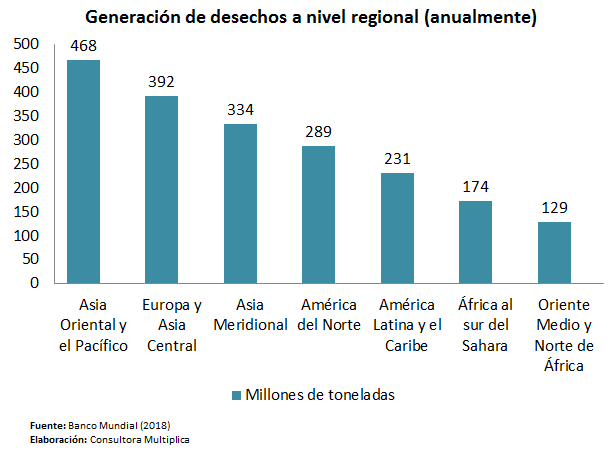 Según el informe del Banco Mundial titulado What a Waste 2.0 (Los desechos 2.0), (i) en el mundo se generan anualmente 2010 millones de toneladas de desechos sólidos municipales, y al menos el 33 % de ellos no se gestionan sin riesgo para el medio ambiente.