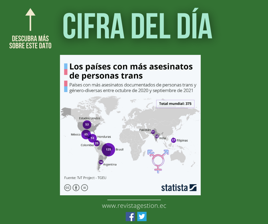 Desde que comenzó la recolección de datos, 2021 está siendo el año con mayor número de muertes de personas trans y género-diversas, con 375 asesinatos registrados entre el 1 de octubre de 2020 y el 30 de septiembre de 2021. La mayoría de los asesinatos tuvieron lugar en Brasil (125), México (65), Honduras (53) y los Estados Unidos (53).