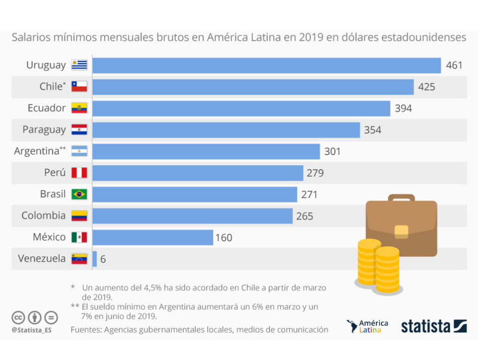 Los salarios mínimos en América Latina para 2019