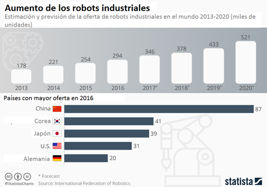 Fuente y elaboración: https://www.statista.com/chart/11397/rise-of-the-industrial-robots/.