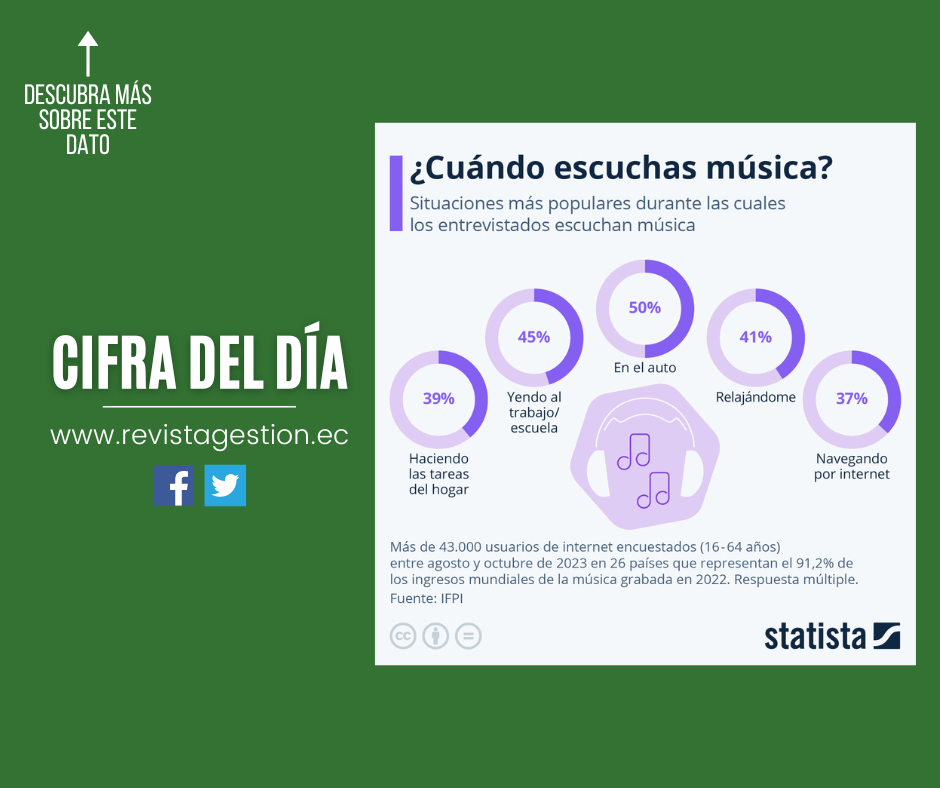 Según el último informe “Engaging with Music”, el 50% de los entrevistados asegura escuchar música “en el auto”, mientras que el 45% lo hace en el trayecto al trabajo o la escuela. …