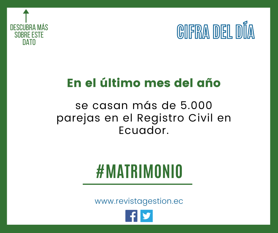 las cifras del Registro Civil muestran que diciembre es el verdadero mes de los novios, en esta fecha se casan más de 5.000 parejas, mientras que en los otros meses van entre 3.000 y 4.000.