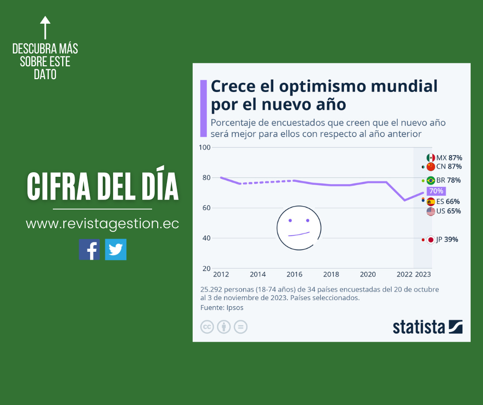 Según un informe de Ipsos, una media global del 70% de los encuestados afirma sentirse optimista respecto a que el año 2024 será mejor para ellos que el año precedente.