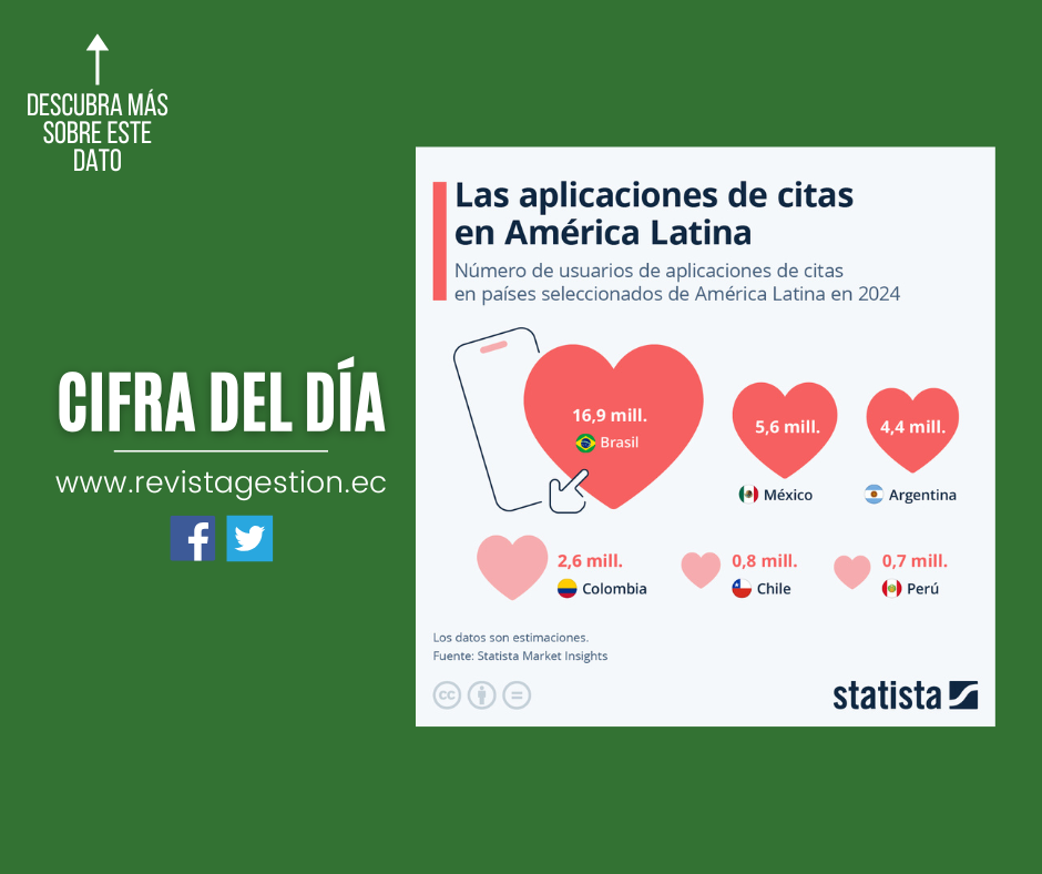 Según datos recientes de Statista Market Insights, Brasil lidera el mercado de las aplicaciones de citas online en la región con un total de 16,9 millones de usuarios.