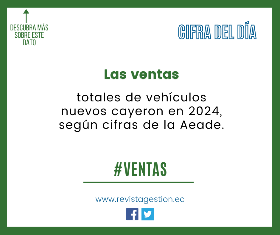 Las ventas totales de vehículos nuevos cayeron en 2024 cerca del 19%, según cifras de la Asociación de Empresas Automotrices del Ecuador (Aeade).