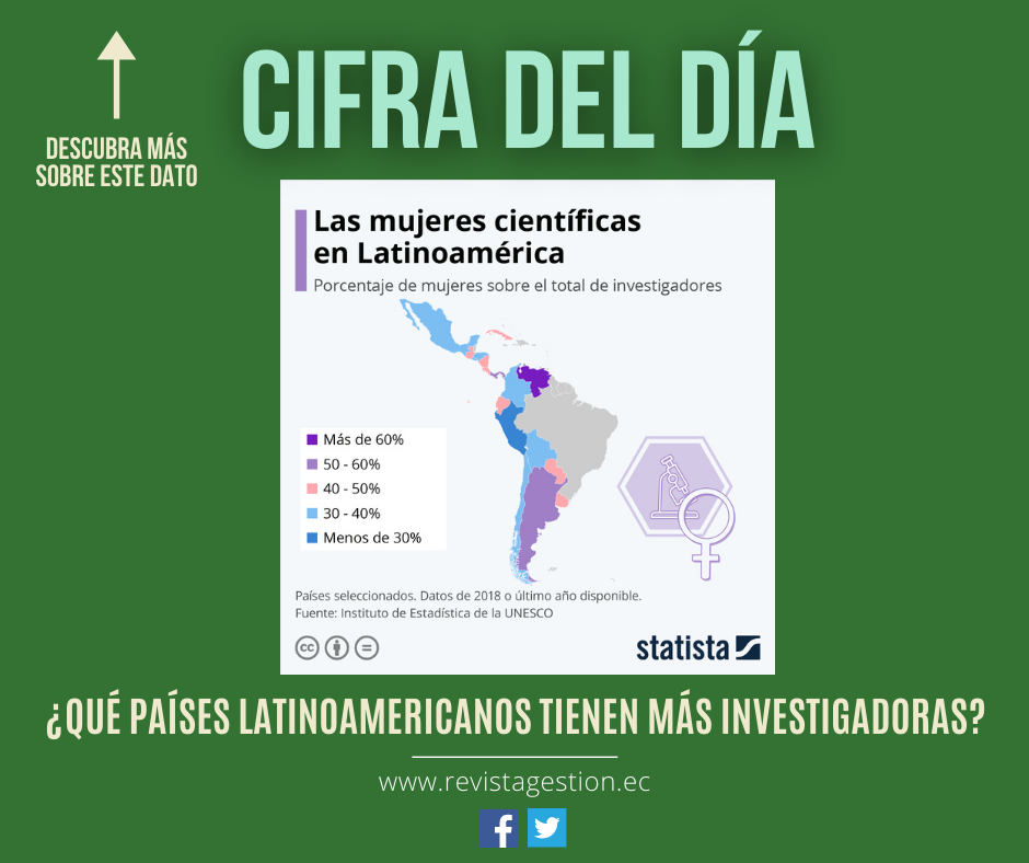 Los países latinoamericanos con el mayor porcentaje de mujeres investigadoras incluyen a Venezuela, Argentina y Panamá.
