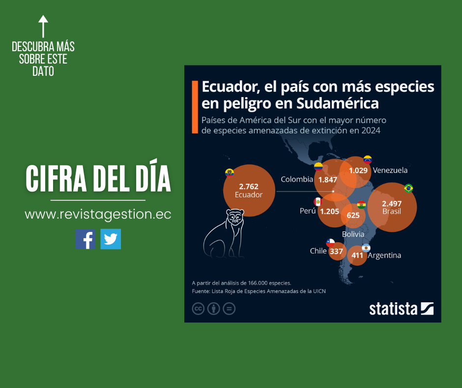 Si analizamos las especies amenazadas en América del Sur este año, Ecuador ocupa el primer lugar en la lista, con un total de 2.762 especies en peligro. La segunda posición la ocupa Brasil, con 2.497 …