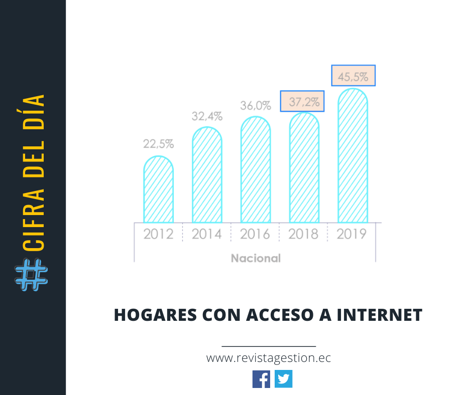 En el 2019, el porcentaje de hogares con acceso a internet aumentó 8,4 puntos porcentuales a nivel nacional.