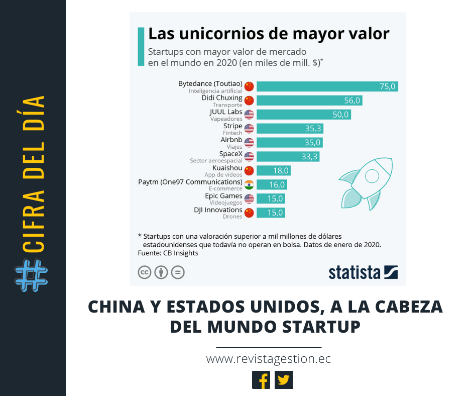 Dos empresas de origen chino lideran el ranking de las empresas unicornio con mayor valor de mercado del mundo.