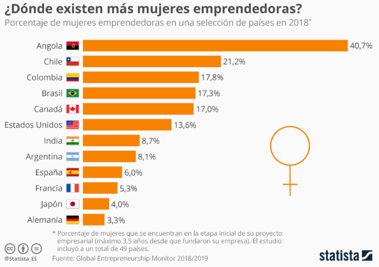 Muchos Estados con economías desarrolladas, como por ejemplo España, Francia, Japón y Alemania, cuentan con tasas muy bajas de mujeres empresarias, todos ellos con proporciones inferiores al 10%.