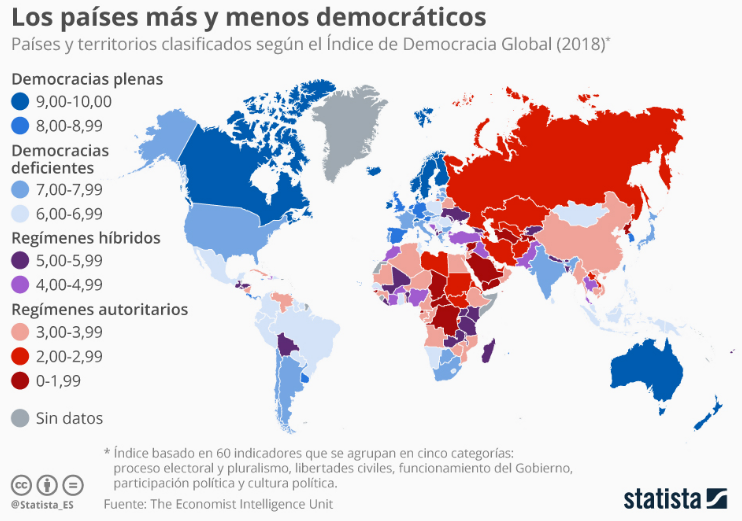 Solo un 4,5% de la población mundial reside en países y territorios que se pueden considerar “democracias plenas”, tal y como recoge el último informe “Índice de Democracia …