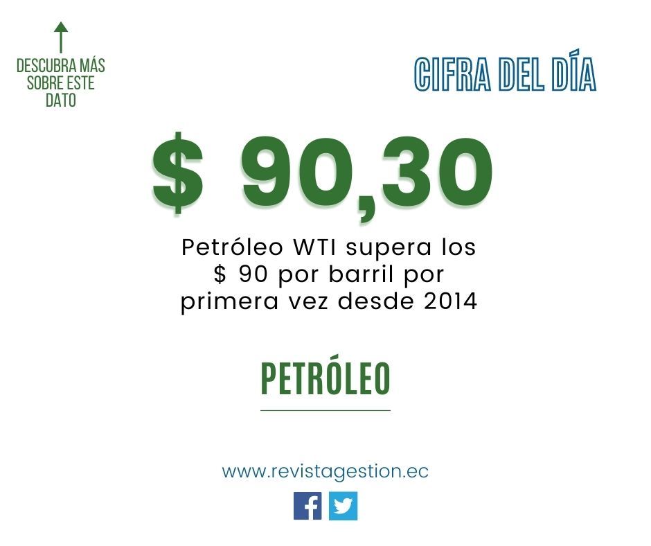 Por primera vez en siete años los precios del petróleo WTI de Estados Unidos superaron los $90. En esta ocasión, subió 2,3% al ubicarse en $90,30 sustentada por la caída del dólar y el invierno que se ha hecho bastante duro en Estados Unidos.